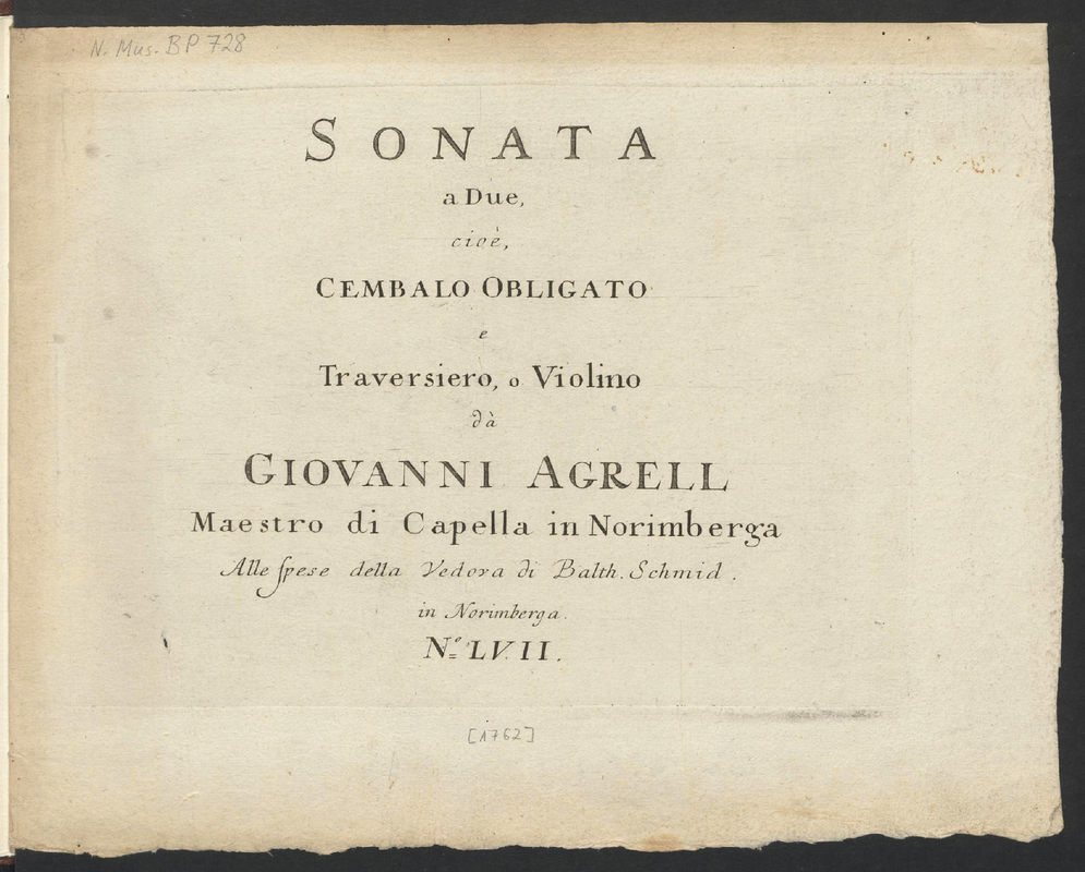 | Alternative. Title | Sonata a Due, cioè Cembalo Obligato e Traversiero, o Violino |