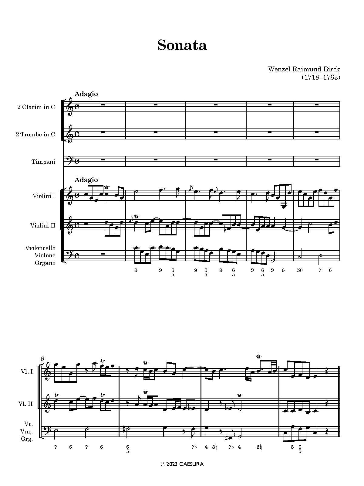 | Alternative. Title | Sonata : con Trombe, e Timpani, e 2. Violini obligati. [In C] / Del Sig: Venceslao Birck |