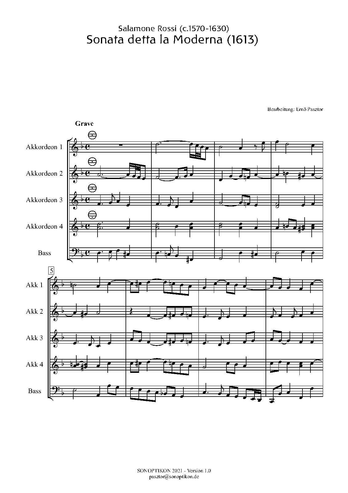 1. Scanned at 600dpi grayscale, improved, converted to monochrome. 2. From the uploader's library. Page 3 with the editor's introduction has been removed. The latter points out that contrary to most claims, the Mantuan Salomone Rossi was not the first to compose a Trio Sonata, Giovanni Paolo Cima's Sonate a tre for Violin, Cornetto & Basso (1610) came before. The originally unfigured bass has been realized by the editor. The "1953" date for this edition is nowhere to be found in the score but may be realistic (Pachelbel's "Triosuiten" in the same collection, No.54, with a Bärenreiter plate number that is lacking here, is actually dated 1950).