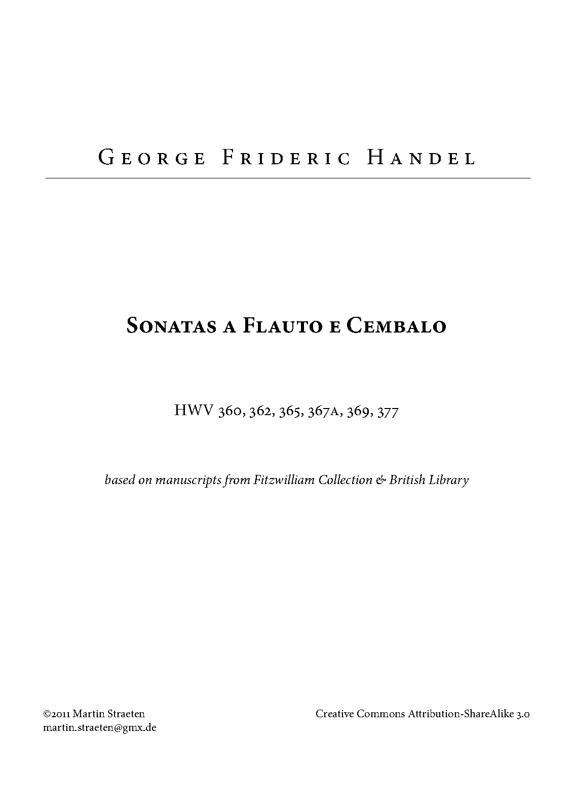 | Opus/Catalogue NumberOp./Cat. No. | HWV 360, 362, 365, 367a, 369, 377 |