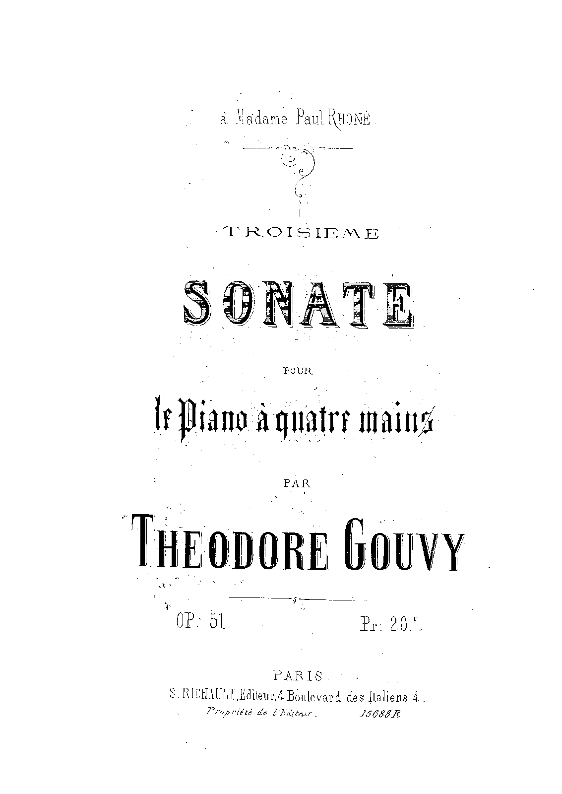 Troisieme Sonate pour le Piano a quatre mains