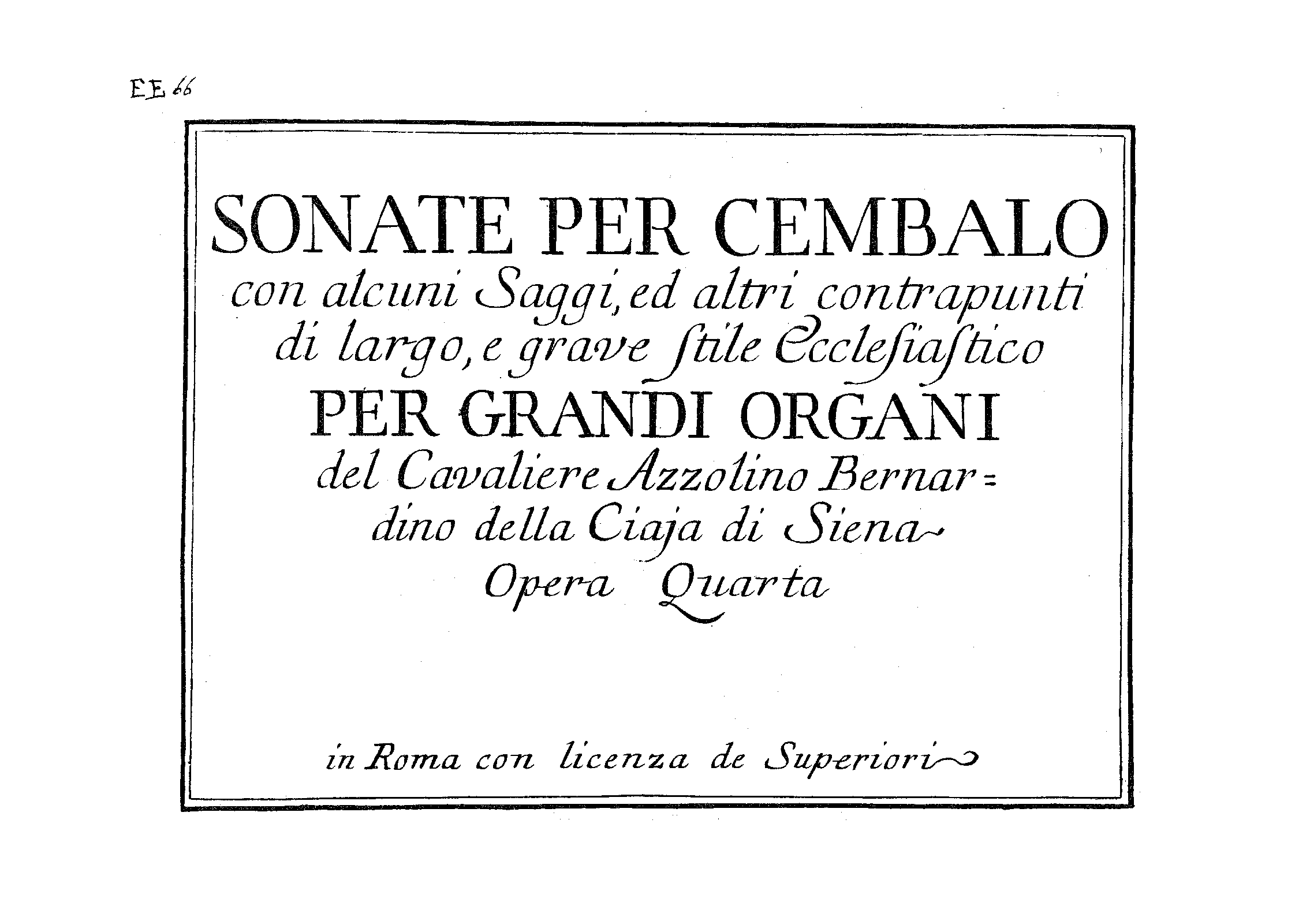 6 sonatas, 12 "saggo" (subjects for counterpoint exercises), 6 ricercars, 1 mass, 1 pastorale: