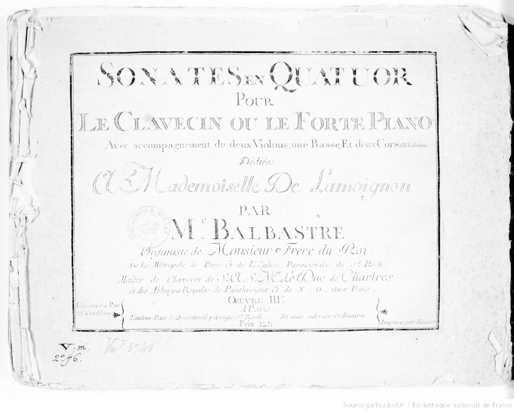 Sonates en quatuor pour le clavecin ou le forte piano avec accompagnement de deux violons, une basse, et deux cors ad libitum