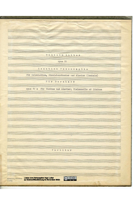 | Alternative. Title | Sonatina Passacaglia für Violine, Streichorchester und Klavier Sonatina passacaglia for violin, string orchestra & piano |