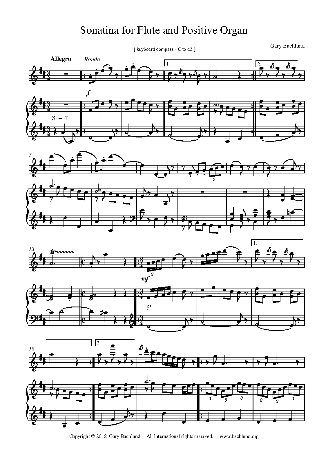 | Work Title | Sonatina for Flute and Positive Organ |
