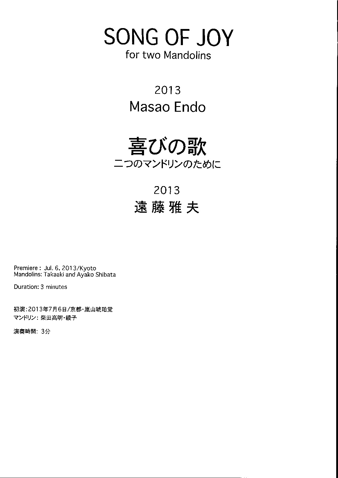 | Genre Categories | Songs; For 2 mandolins; Scores featuring the mandolin; For 2 players |