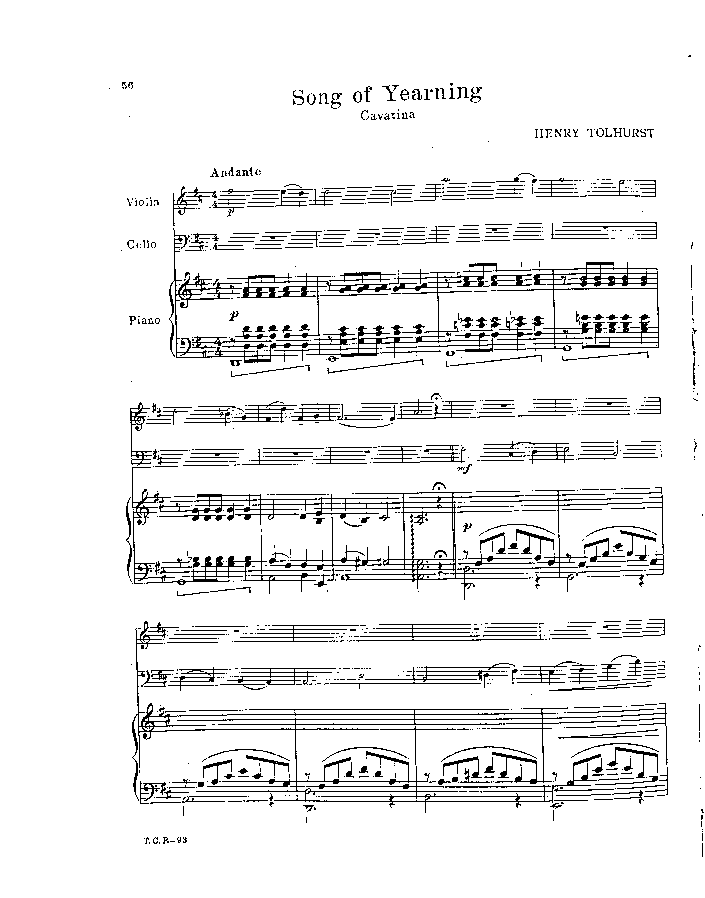 | Genre Categories | Songs; Cavatinas; For violin, cello, piano; |