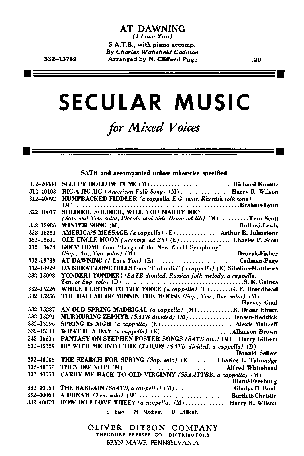 Boston: Oliver Ditson Co., 1917. Plate 5-150-72098-4.