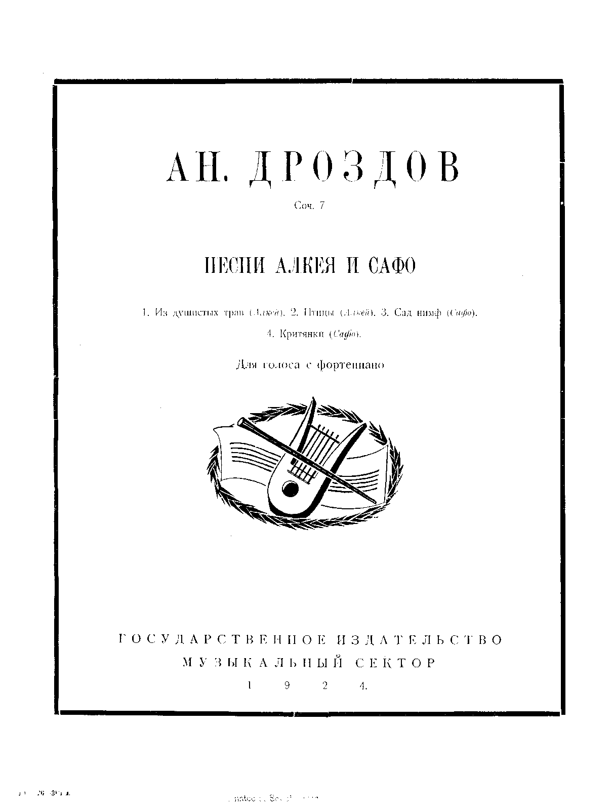 | Librettist | Vyacheslav Ivanov (1866-1949), after Alcaeus (Nos.1-2) and Sappho (Nos.3-4) |