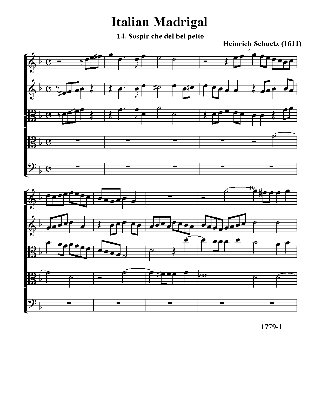 | First Publication | 1611 in Italian Madrigals, Op.1 (No.14) |