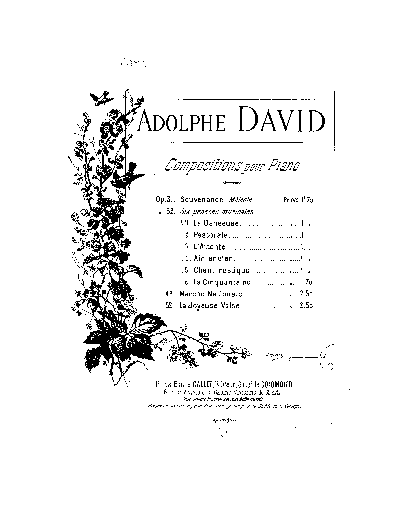 | Genre Categories | Songs; For piano; Scores featuring the piano; For 1 player |