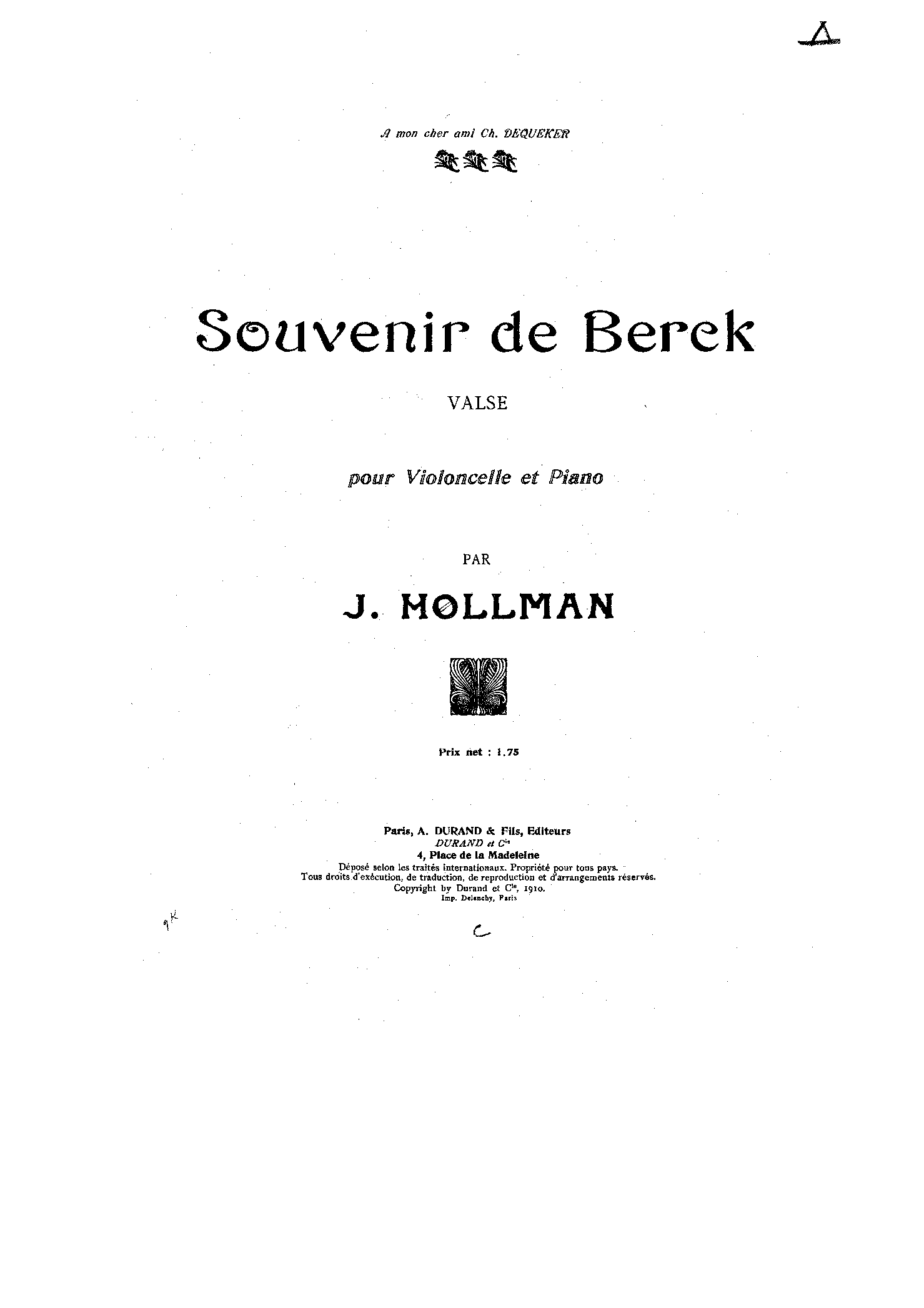 | Work Title | Souvenir de Berek |