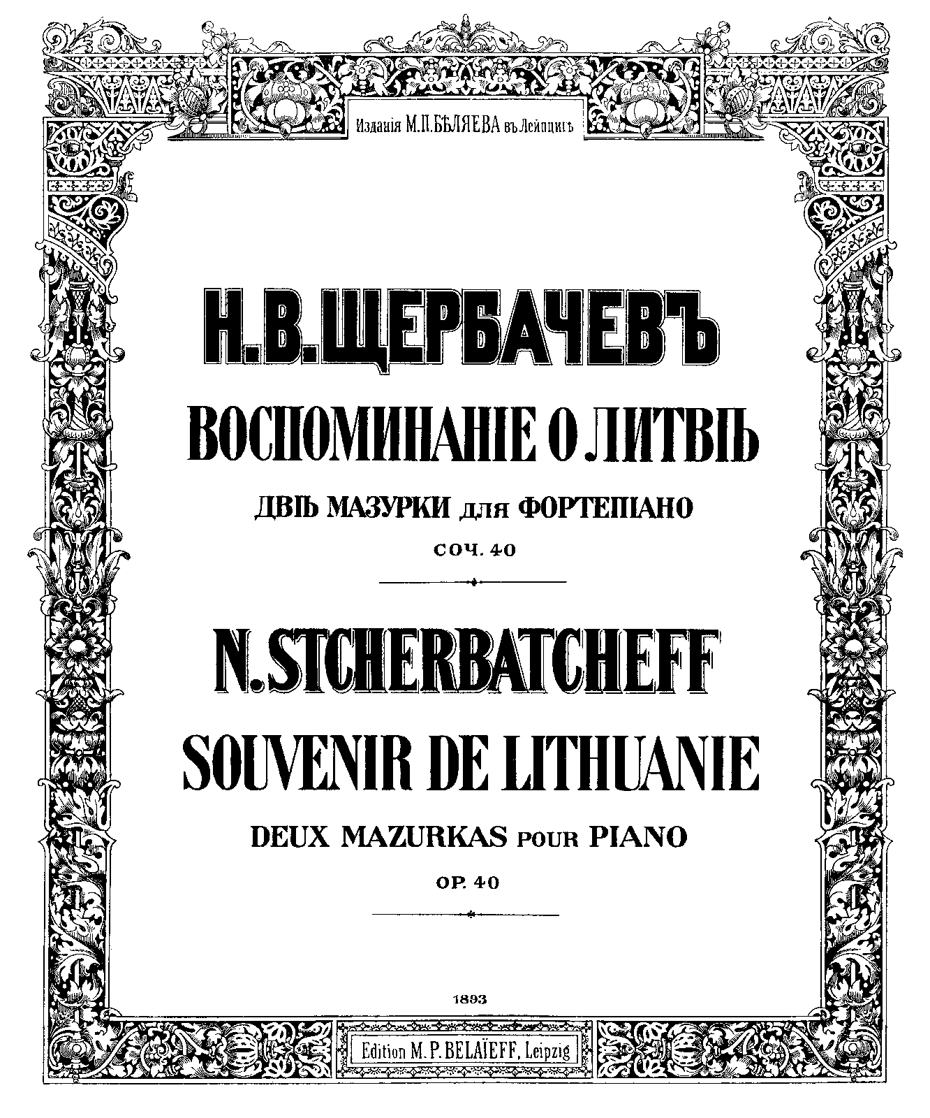 | First Publication. | 1893 – Leipzig: M.P. Belaieff |