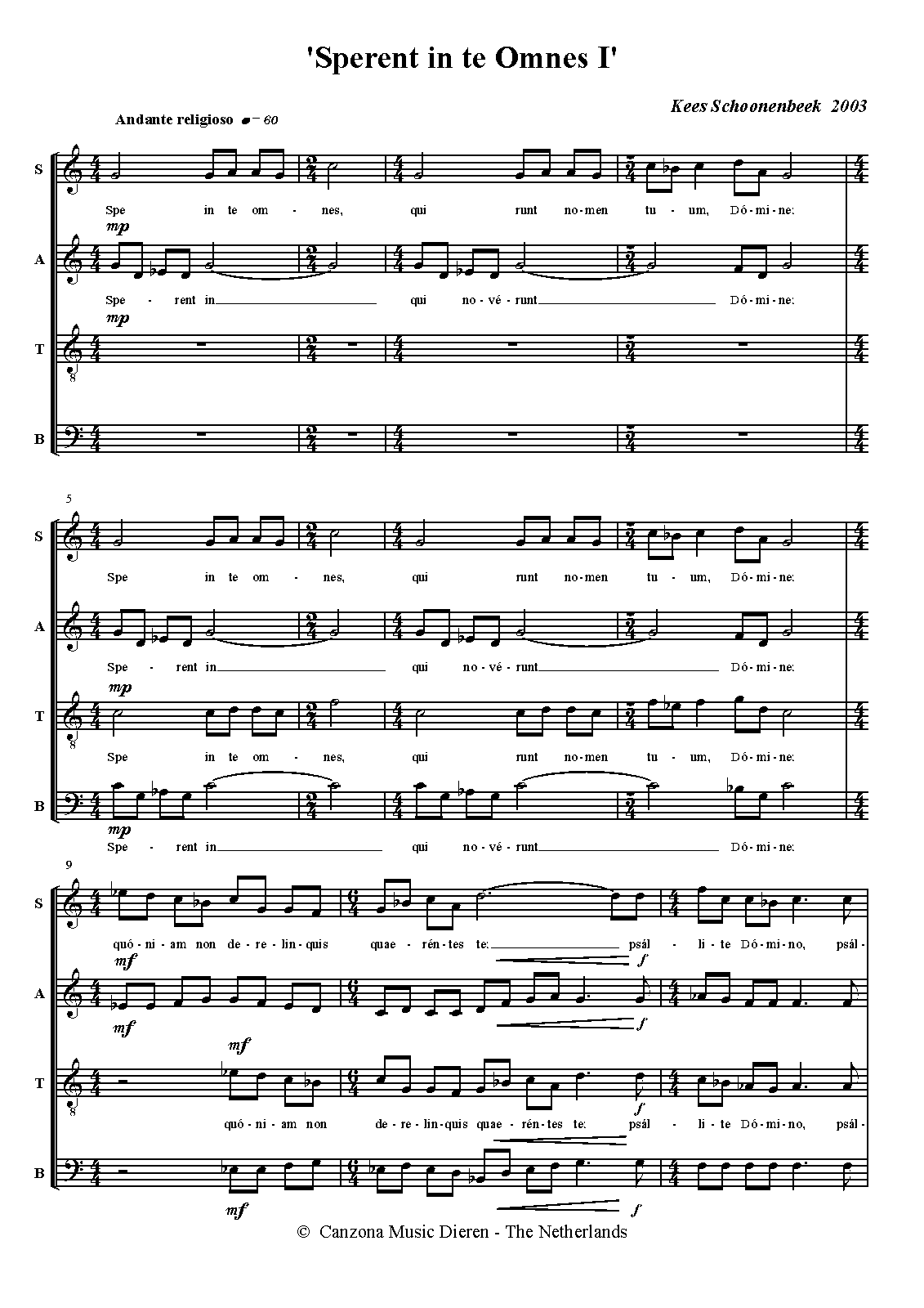 | Work Title | Sperent in te Omnes I |