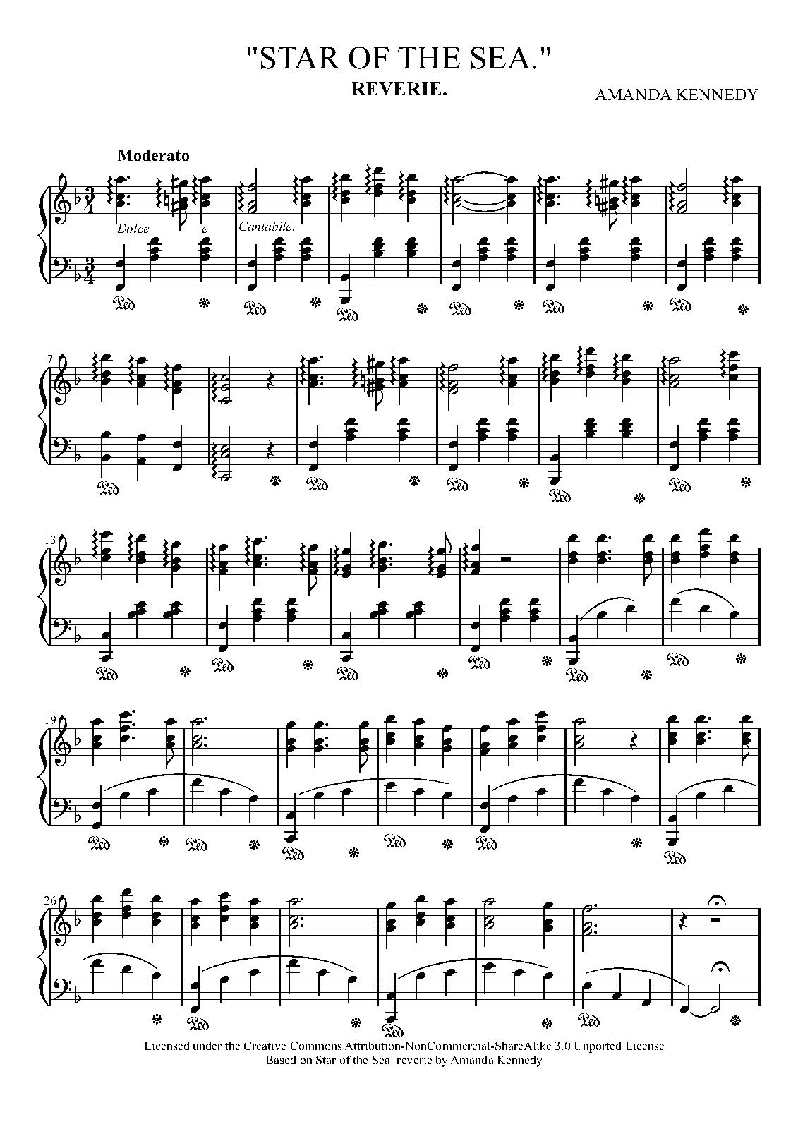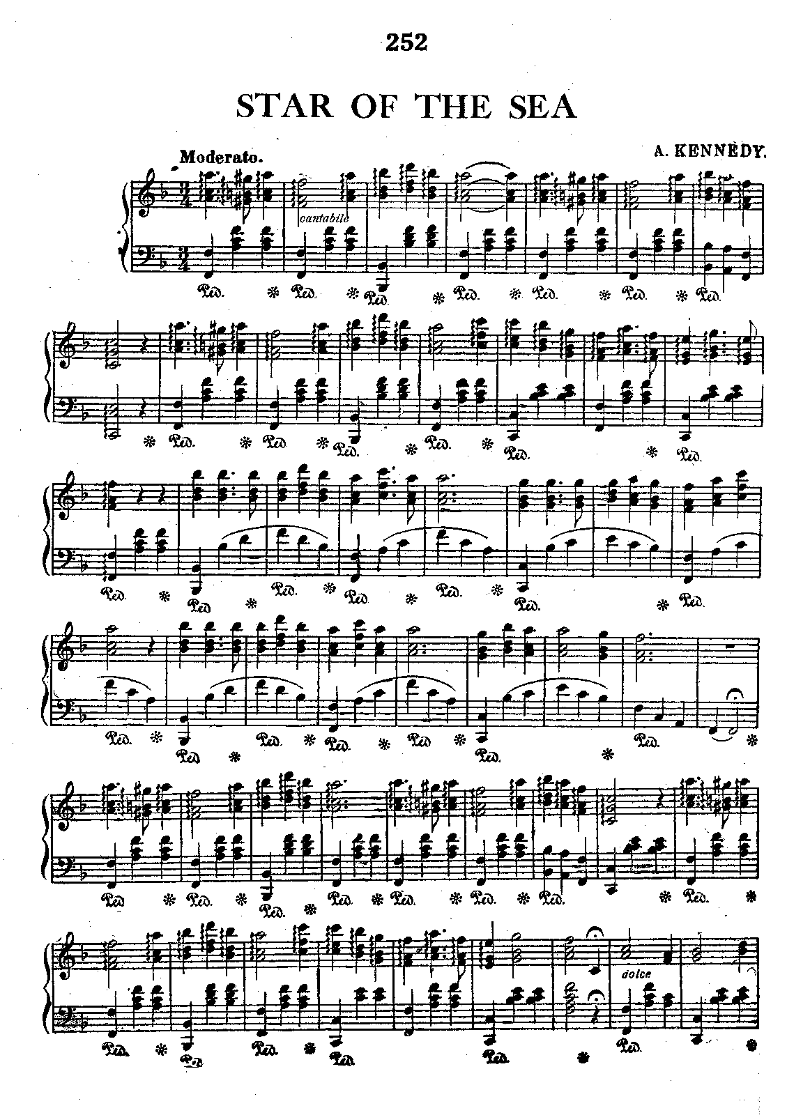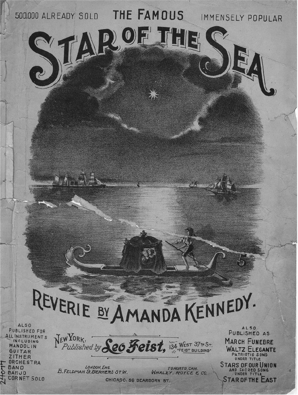 According to an article or ad that ran in many 1930 newspapers, composed or published when she was 16. Renewed in 1911. " "Yet the composer, Mrs. Amanda Kennedy Moore, a white haired piano teacher now past 60, has shared but modestly in its proceeds. When she wrote "Star of the Sea," Amanda Kennedy was a serious little Irish girl of 16, with an ambition to be a music teacher."" (So born ca.1867 or earlier??)