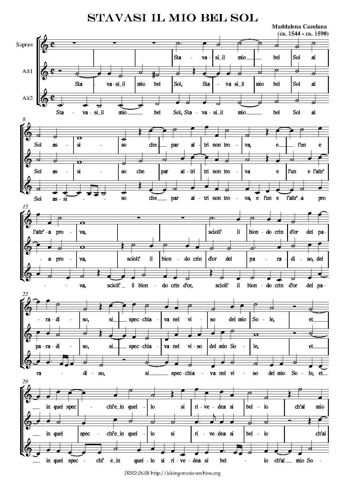 Stavasi il mio bel Sol (Casulana, Maddalena)