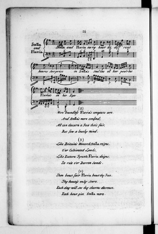 | Incipit | Stella and Flavia ev'ry hour do diff'rent hearts surprise |