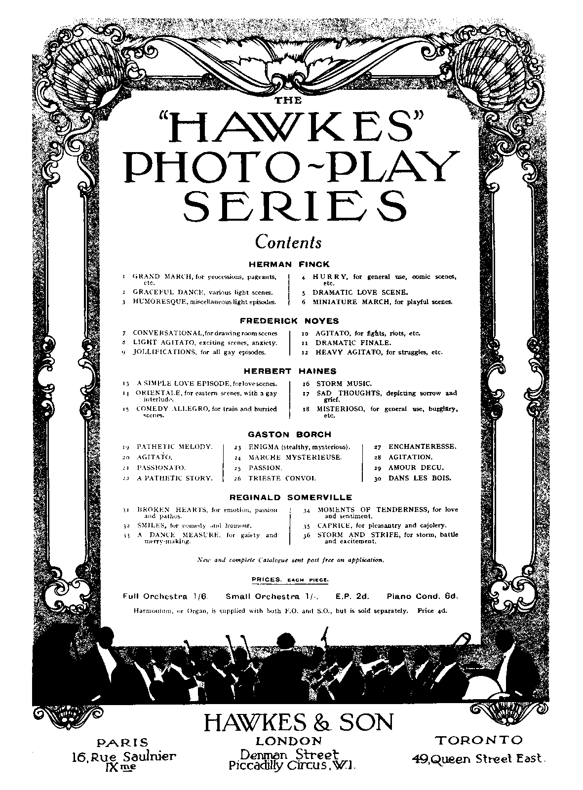 | Extra Information | Intended for use as accompaniment for silent movies. |
