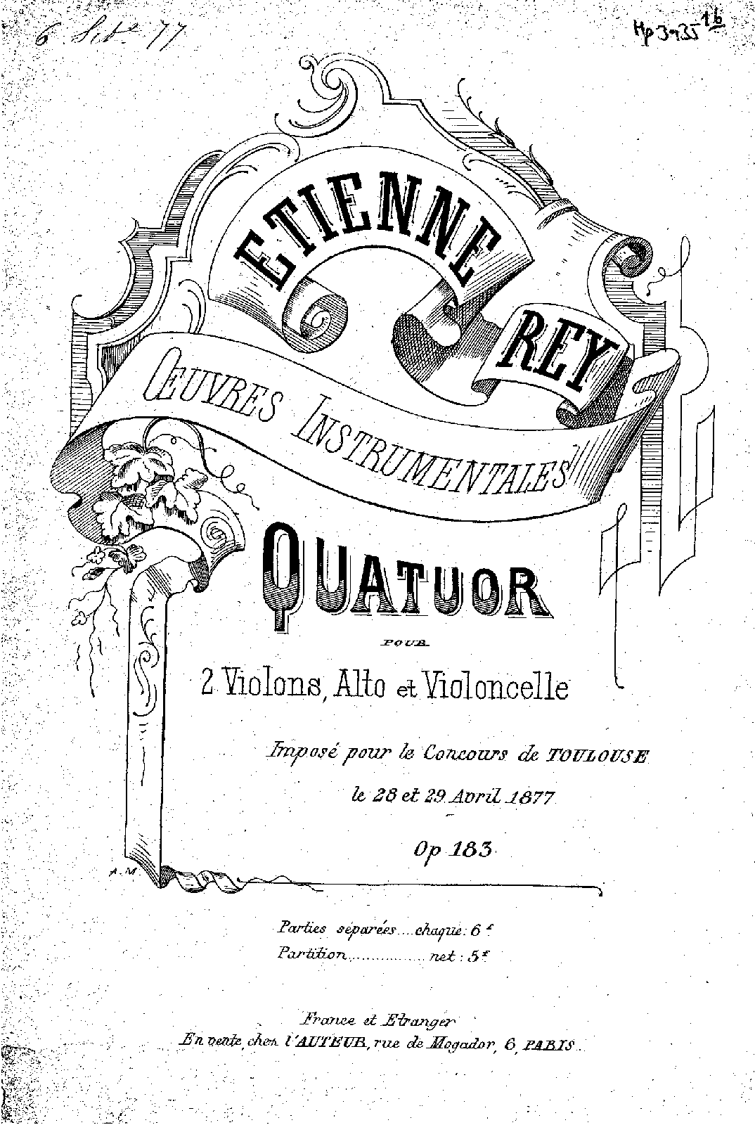 Publisher. Info. Paris: the composer, n.d.(1877). Plate Et. 3.