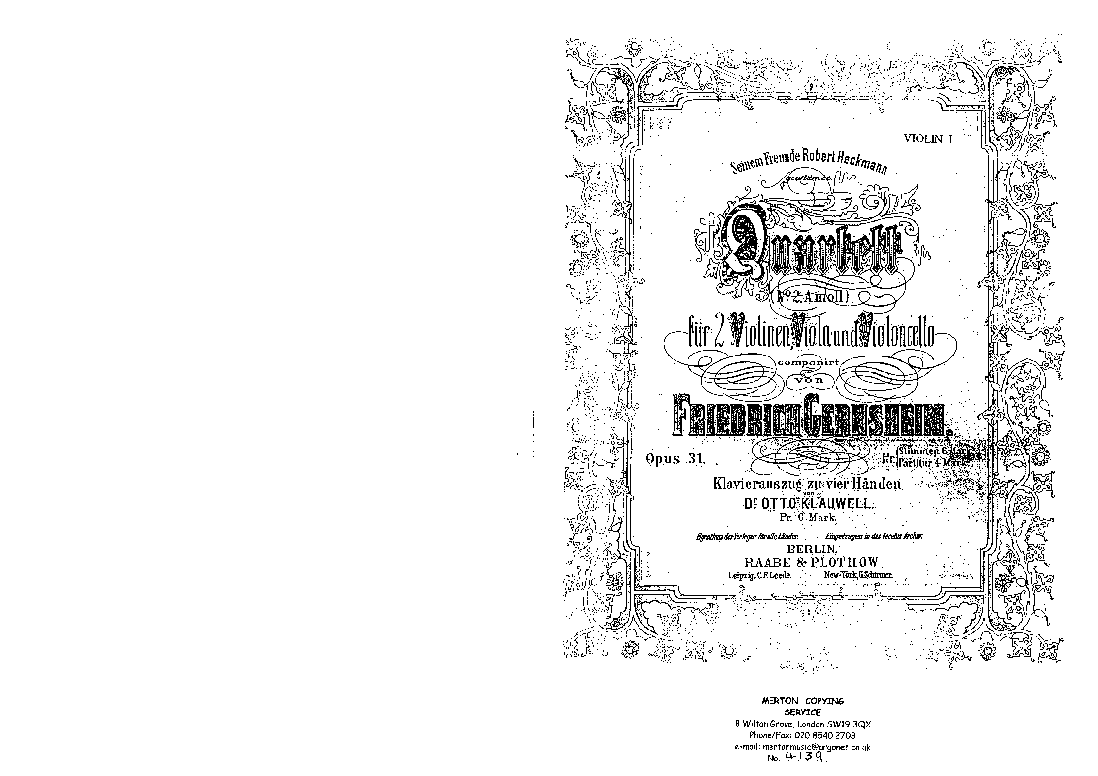 | Genre Categories | Quartets; For 2 violins, viola, cello; Scores featuring the violin; |