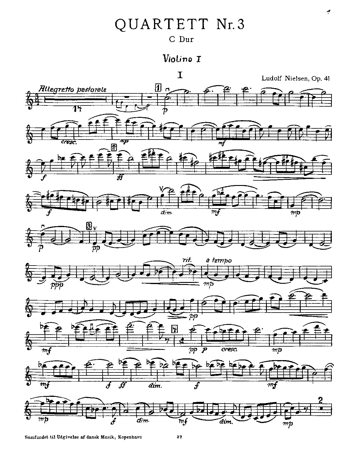 Strygekvartet, nr. 3, C dur, for 2 violiner, viola og violoncel = Streichquartett, Nr. 3, C dur, für 2 Violinen, Viola u. Violoncell