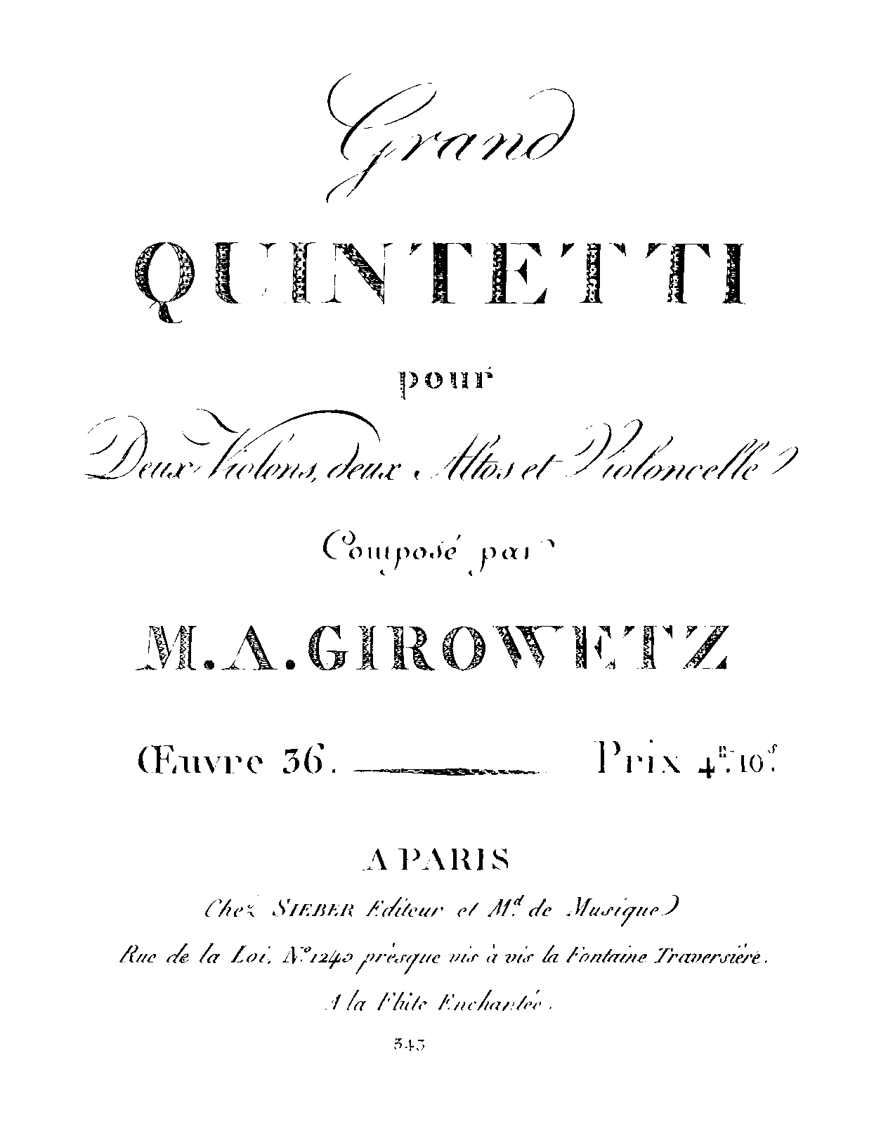| Alternative. Title | Grand quintetti pour deux violons, deux altos et violoncelle Oeuvre 36 (Girowetz); Grand quintuor pour Deux Violons, deux Altes & Violoncelle oeuvre 36 |