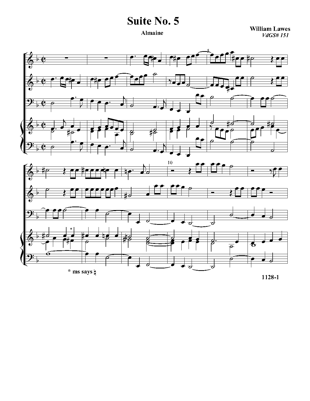 | Work Title | Suite No.5 for 3 Viols and Organ |