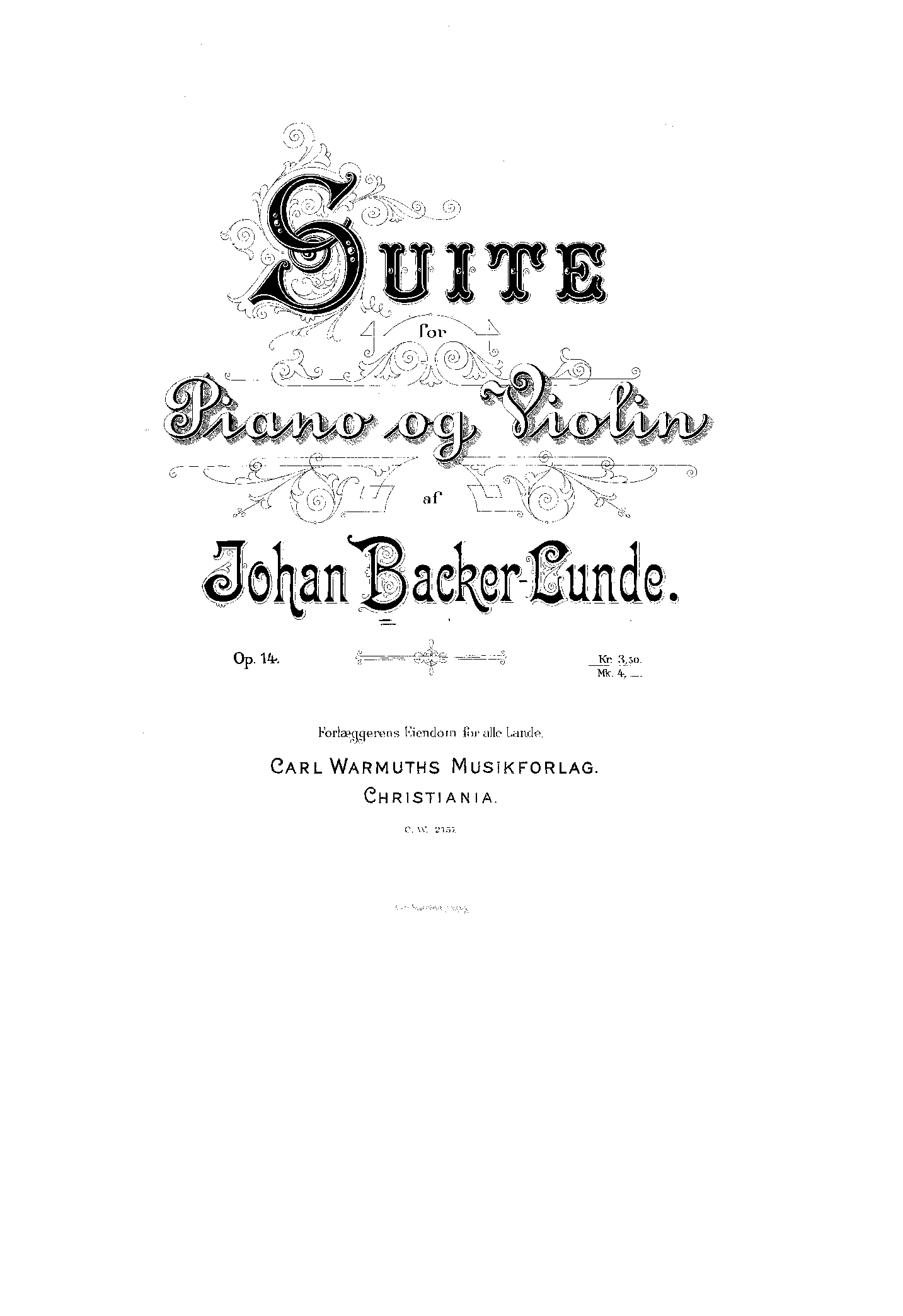 Norsk bokfortegnelse, 1896 is the year this was published by Warmuth (and Op.16 published the same year, a small suite for the same instruments, by Zapffe.)