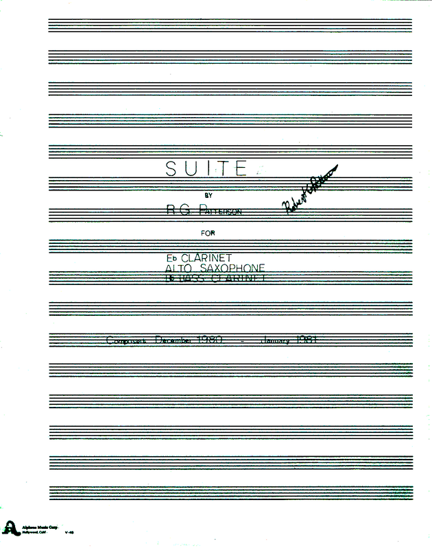 | Genre Categories | Suites; For piccolo clarinet, bass clarinet, alto saxophone; Scores featuring the piccolo clarinet; |