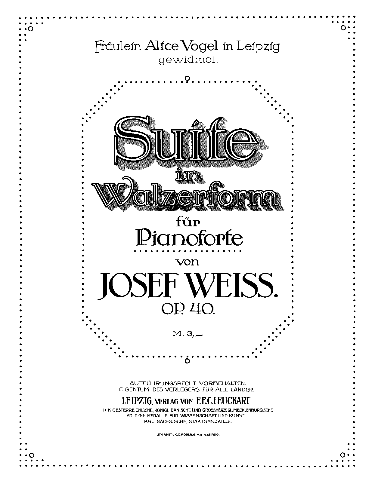 | Dedication | Fräulein Alice Vogel in Leipzig gewidmet |
