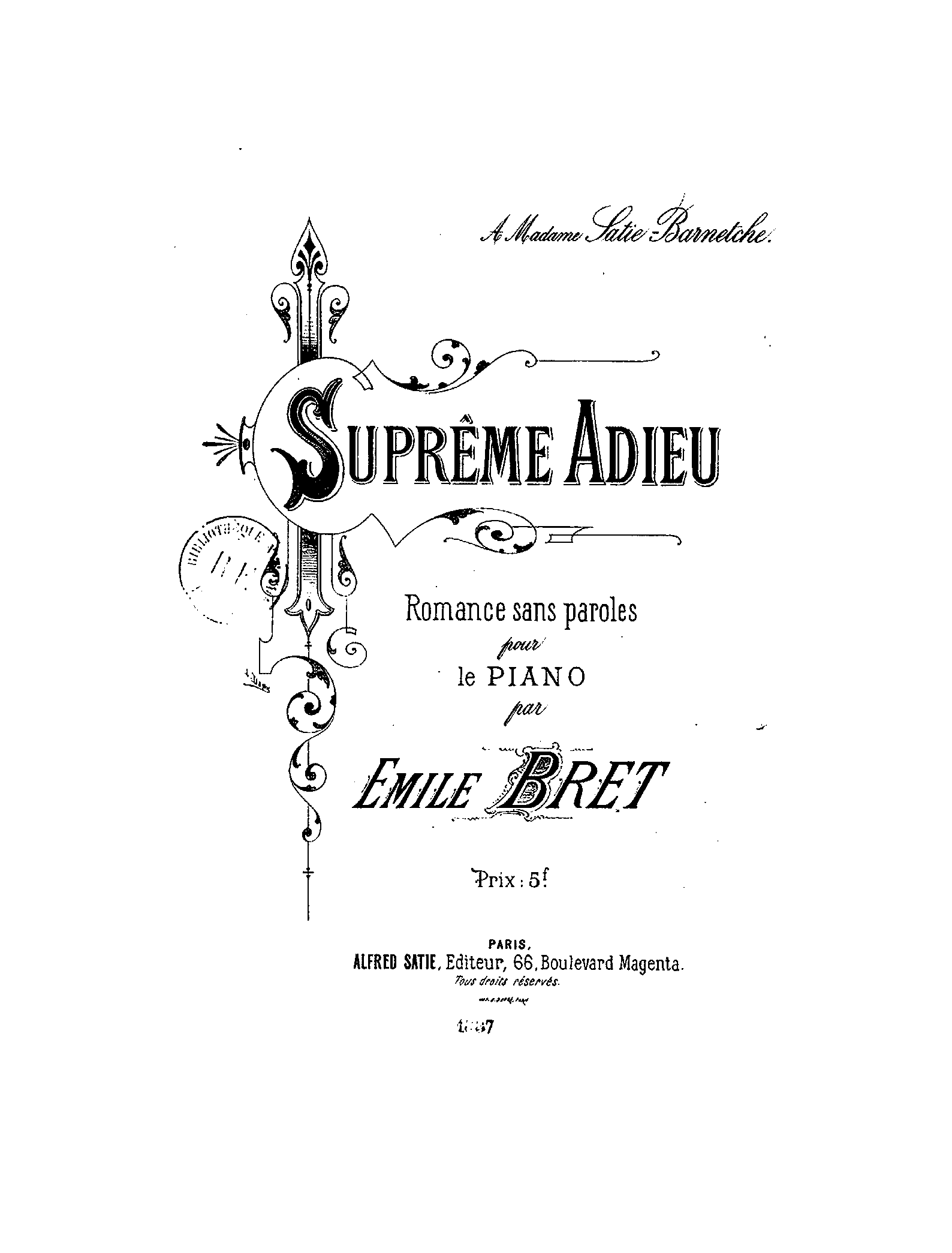 | First Publication. | 1887 — Paris: Alfred Satie |