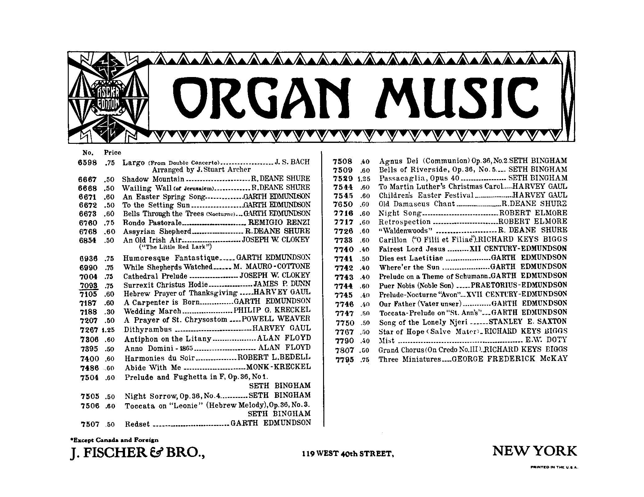 New York: J. Fischer & Bro., 1936. Plate 7093