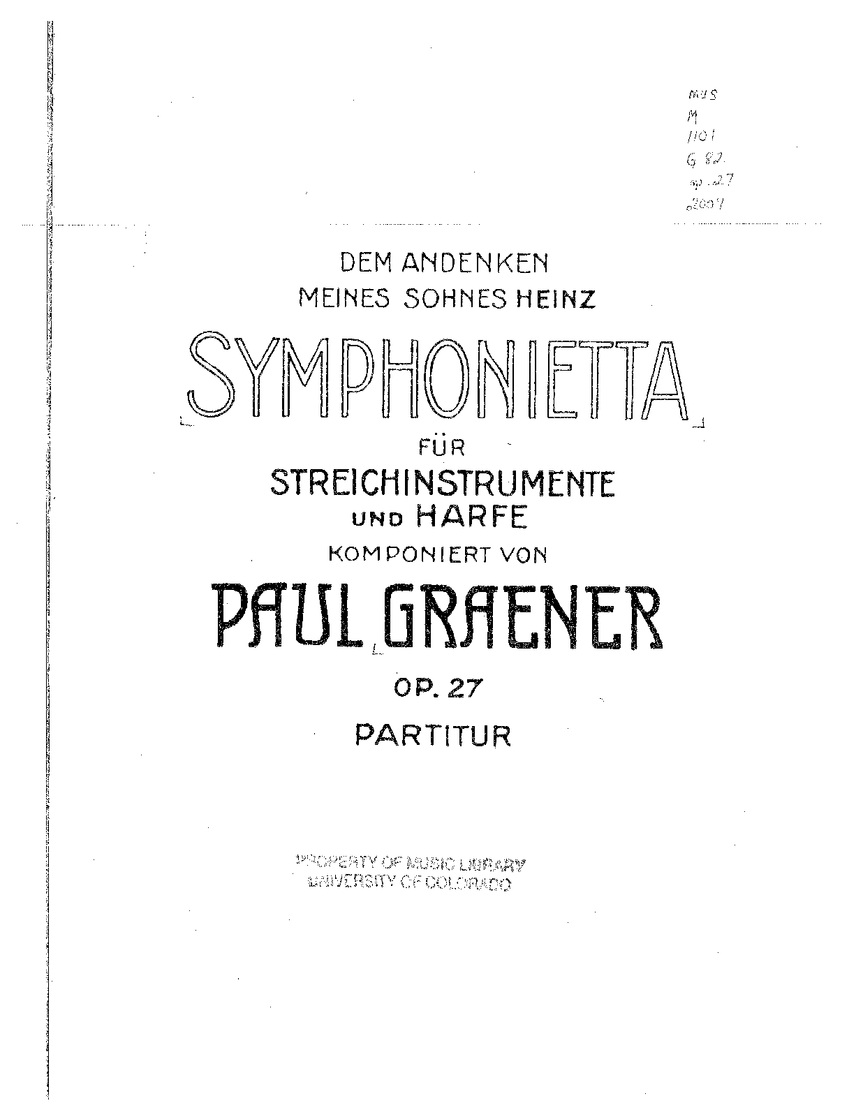 | Work Title | Symphonietta für Streichinstrumente und Harfe |