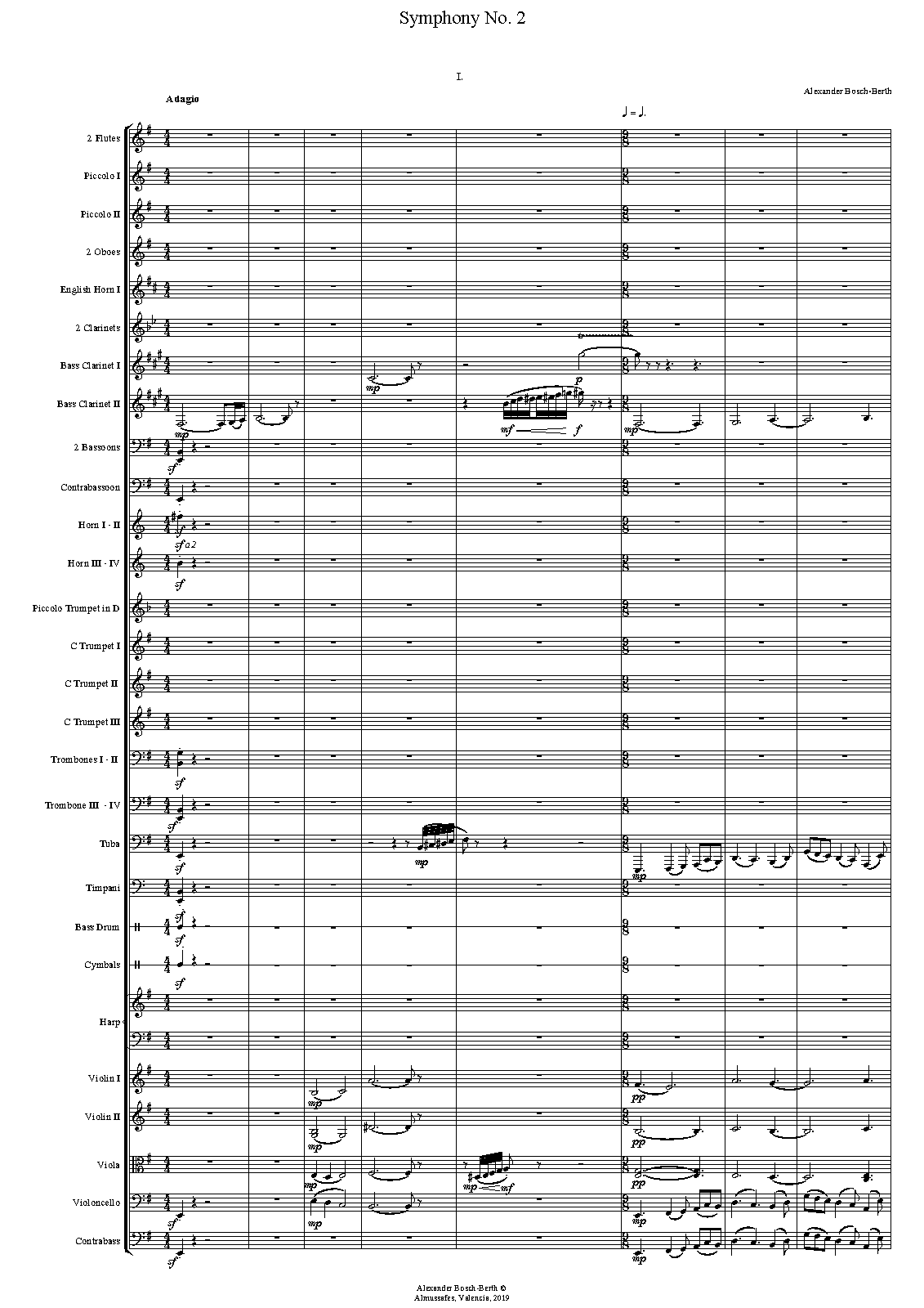 ⇒ 33 more: Flute 2 • Piccolo 1 • Piccolo 2/Alto Flute • Oboe 1 • Oboe 2 • English Horn • Clarinet 1 (B♭) • Clarinet 2 (B♭) • Bass Clarinet 1 (B♭) • Bass Clarinet 2 (B♭)/Piccolo Clarinet (E♭) • Bassoon 1 • Bassoon 2 • Contrabassoon • Horn 1 (F) • Horn 2 (F) • Horn 3 (F) • Horn 4 (F) • Piccolo Trumpet (D) • Trumpet 1 (C) • Trumpet 2 (C) • Trumpet 3 (C) • Trombone 1 • Trombone 2 • Trombone 3 • Trombone 4 • Tuba • Timpani, Bass Drum/Tambourine/Triangle/Snare Drum/Wind Chimes/Gong/Chimes, / Cymbals/Tambourine/Crotales • Harp • Violins I • Violins II • Violas • Cellos • Basses