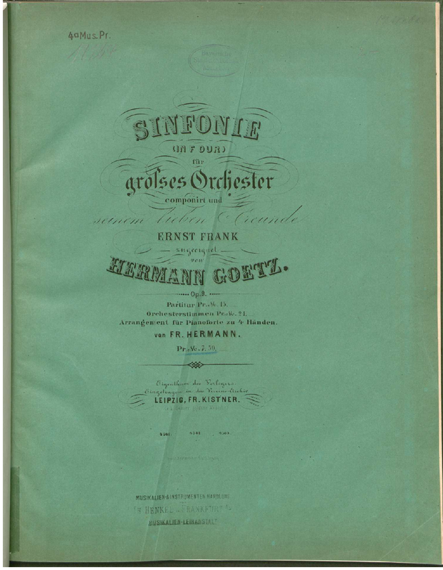 | First Publication. | 1875 – Leipzig: Fr. Kistner |