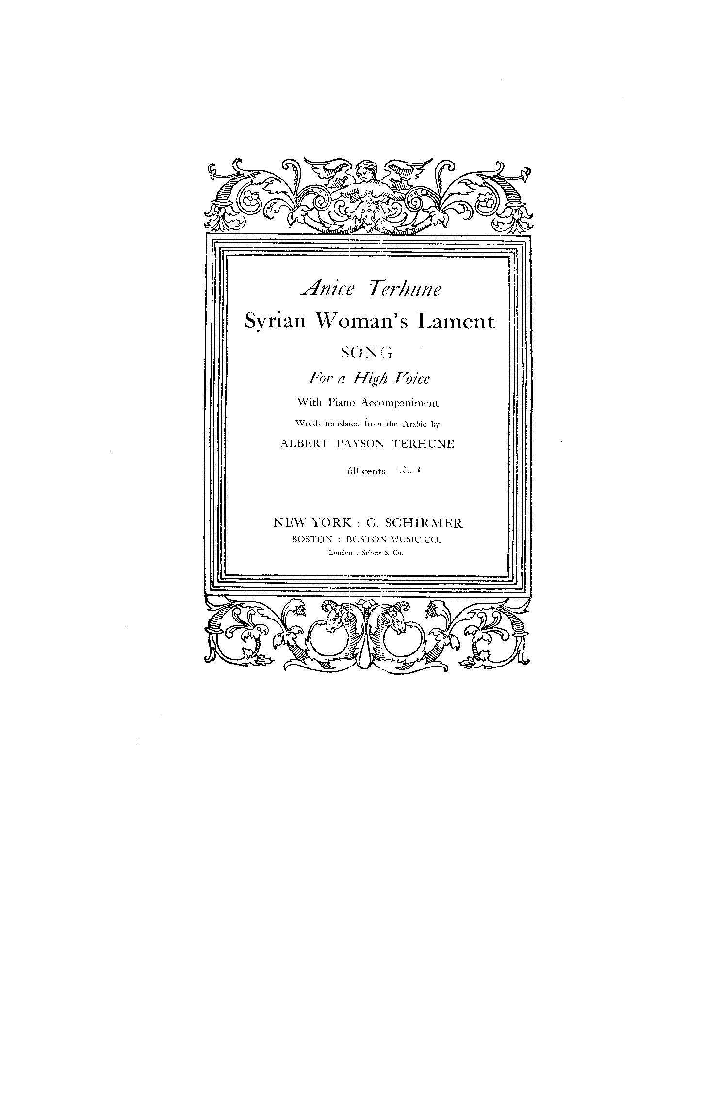 | Alternative. Title | Syrian woman's lament. Song for a high voice with piano accompaniment |