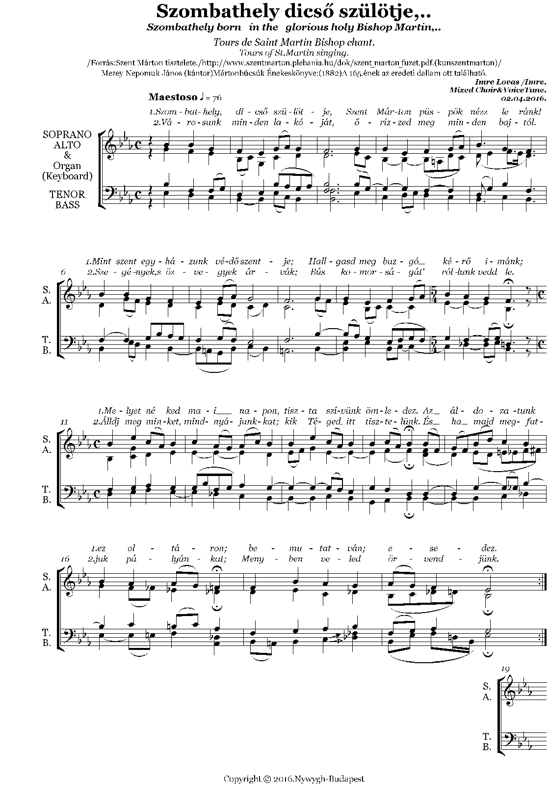 | Work Title | Szombathely dicső szülötte St. Martini |