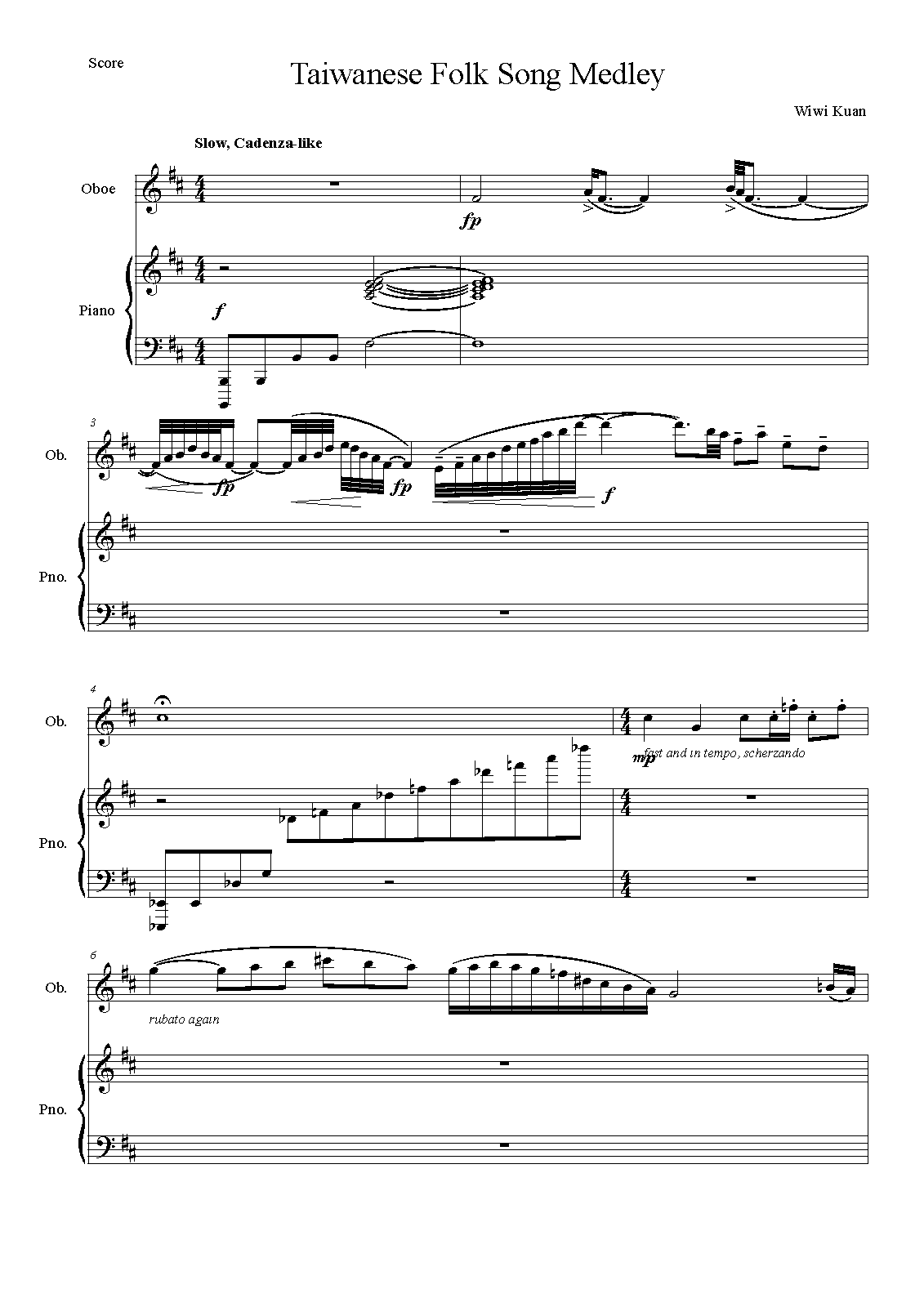 | Extra Information | A piano solo arrangement of two traditional Taiwanese folk songs: "思想起" and "草螟弄雞公". Originally written for piano and wind instrument in 2013, revised for solo piano in 2025. |