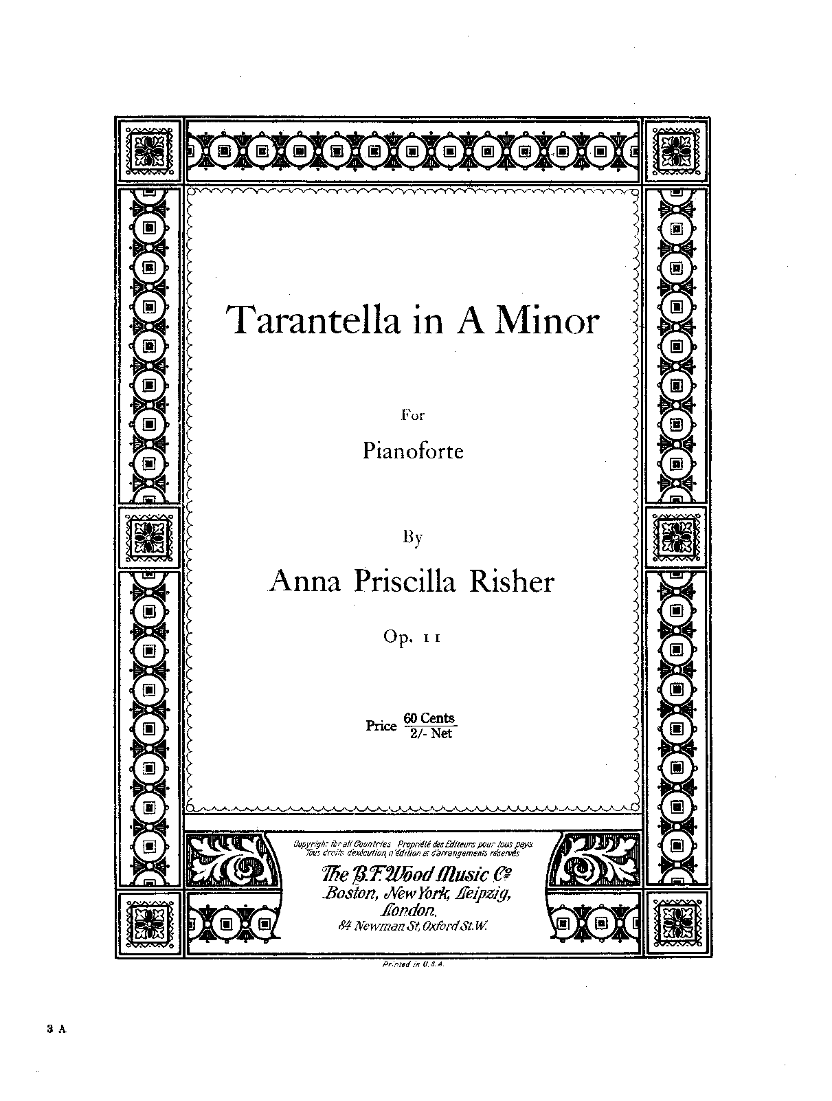 | Alternative. Title | Tarantella in A Minor for Pianoforte |