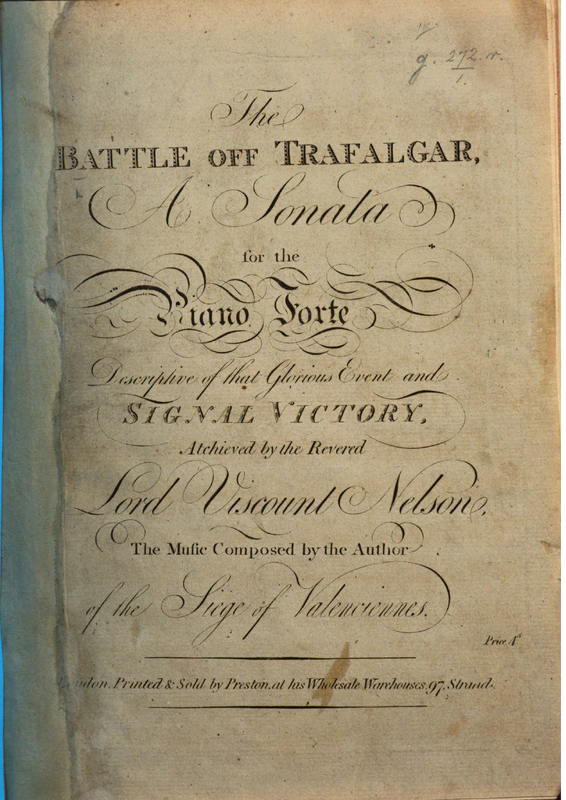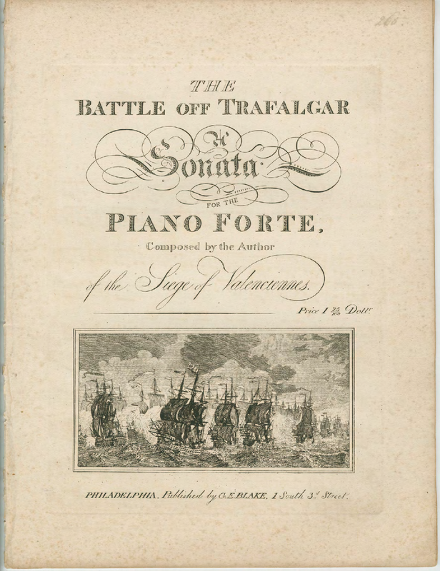 | Alternative. Title | The Battle off Trafalgar. A Sonata for the Piano Forte Descriptive of that Glorious Event and Signal Victory, atchieved [sic] by the revered Lord Viscount Nelson, the music composed by the author of the Siege of Valenciennes; Sonata, descriptive of the Battle off Trafalgar; The Battle of Trafalgar |