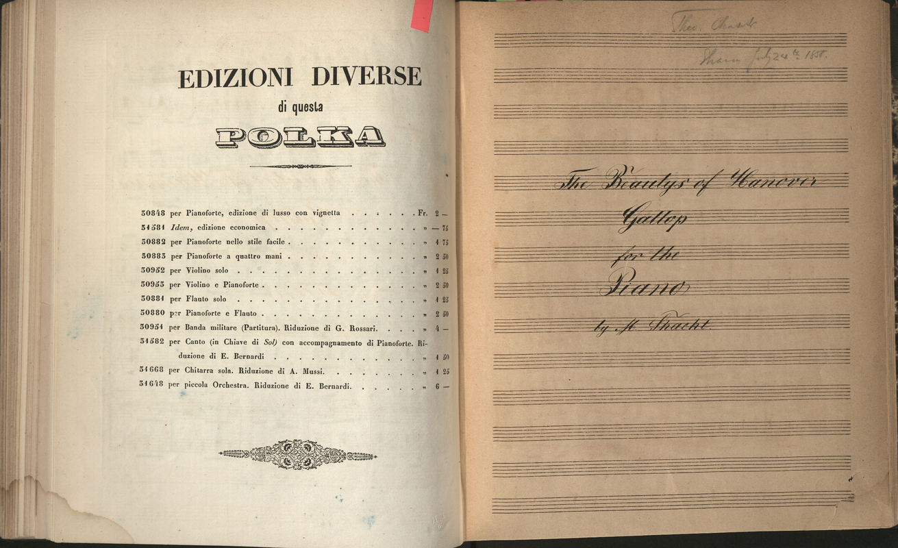 | Authorship Note The composer is only identified as M. Schacht. An M. Schacht had dance music published in Hanover and Braunschweig from 1840 to 1857 and may not be the same person as Albert M. Schacht. |