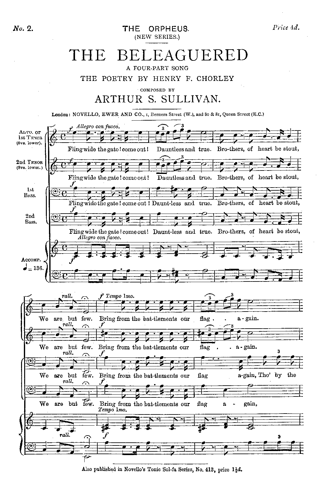| Work Title | The Beleaguered. A Four-Part Song. |