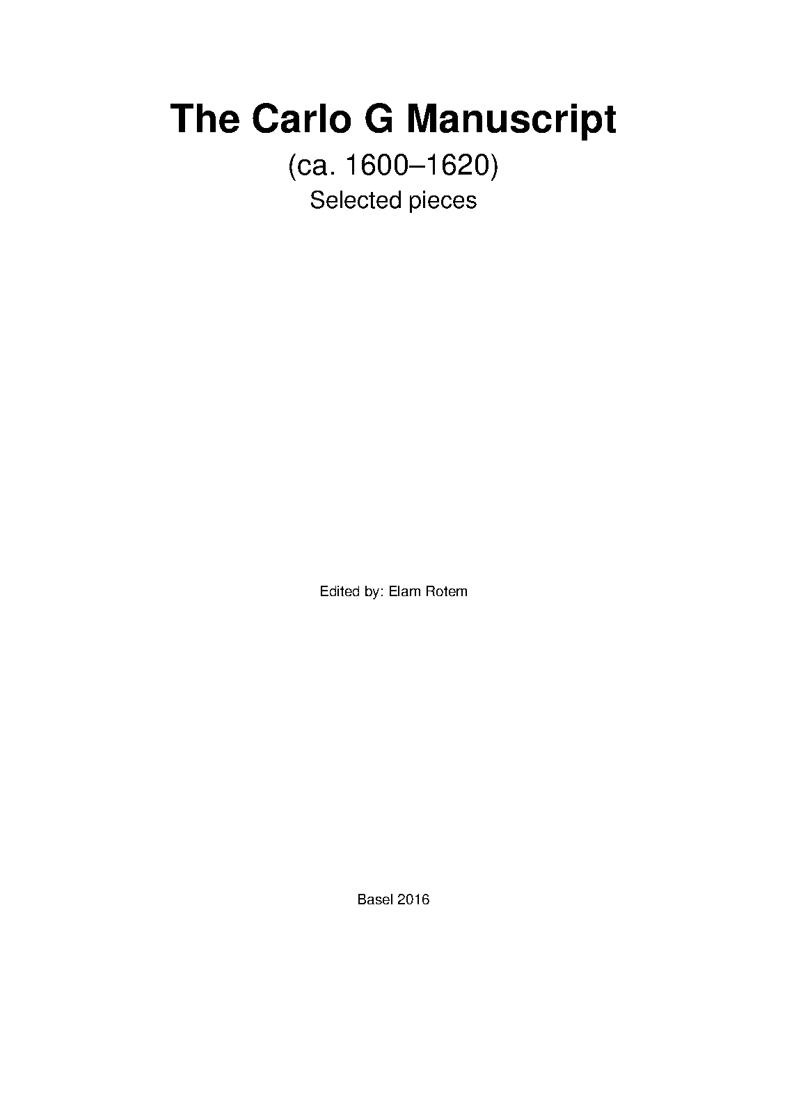 | External Links | RISM 1001192911 Early Music Sources Video introduction Elam Rotem, The Carlo G Manuscript Sotheby's report by Ian Fenlon Roman Chlada, Die Begleitung am Tasteninstrument bei Carlo G. (thesis, PDF, in German) Wikipedia article (French) |