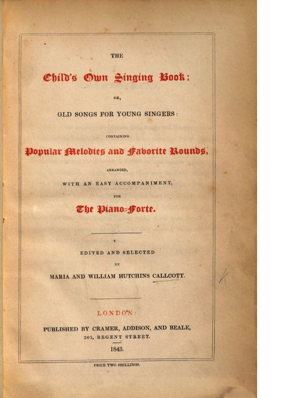 The Child's Own Singing Book; or, old songs for young singers: containing popular melodies and favorite rounds, arranged, with an easy accompaniment, for the piano-forte. Edited and selected by Maria and William Hutchins Callcott