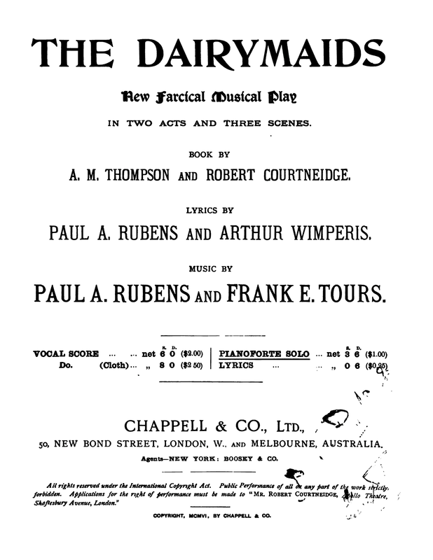 | Librettist | Alexander Mattock Thompson (1861–1948) and Robert Courtneidge (1859–1939) (book) Rubens and Arthur Wimperis (1874–1953) (lyrics) |