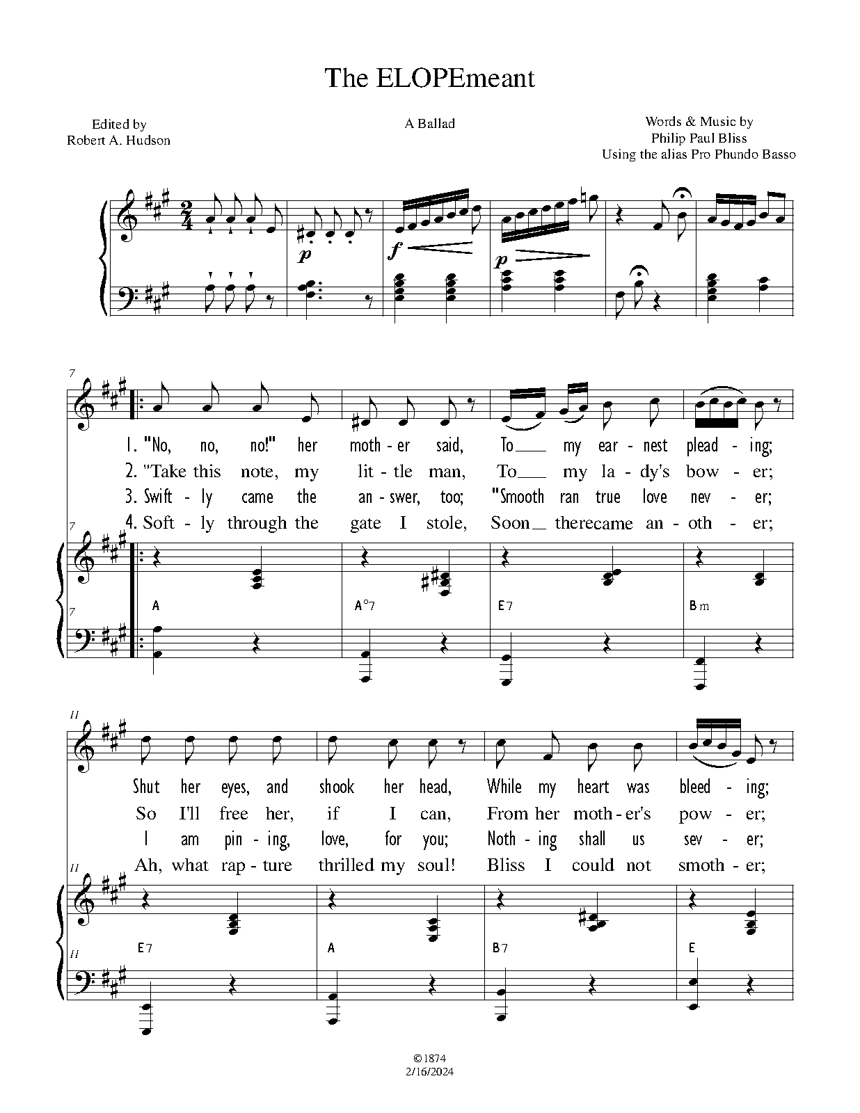 | Alternative. Title | The Elopement. Ballad |