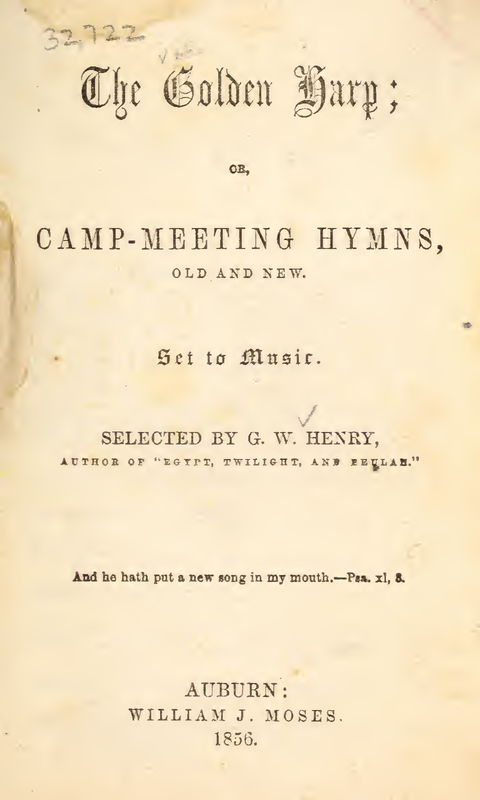 | Alternative. Title | The Golden Harp; or, Camp-Meeting Hymns, old and new. Set to Music. Selected by G. W. Henry, author of "Egypt, Twilight, and Beulah." |