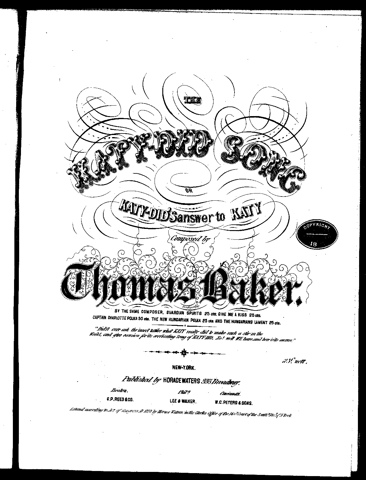 | Work Title | The Katy-Did Song, or Katy-Did's answer to Katy |