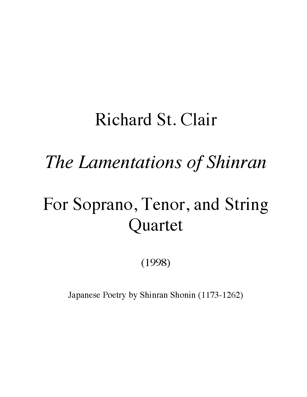 | Work Title | The Lamentations of Shinran for Soprano, Tenor and String Quartet |