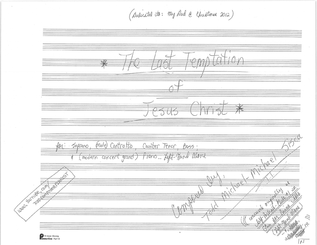 This is Todd Michael-Michael Sisca's entirely original musical setting of the Last Temptation of Jesus Christ. The text is also Todd Michael-Michael Sisca's entirely original conception, as well.